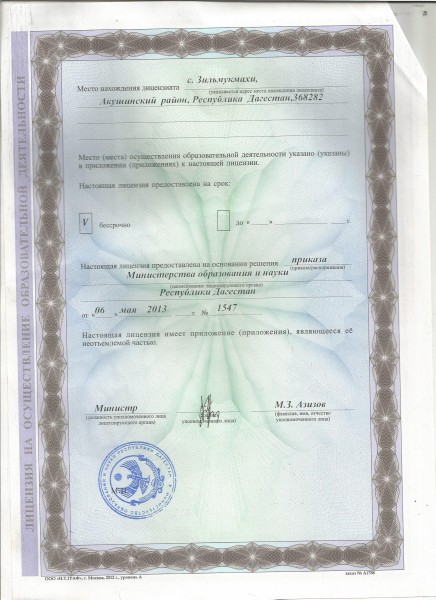 | Адрес местонахождения образовательной организации* | 368282, Республика Дагестан, Акушинский район, с. Зильмукмахи |
