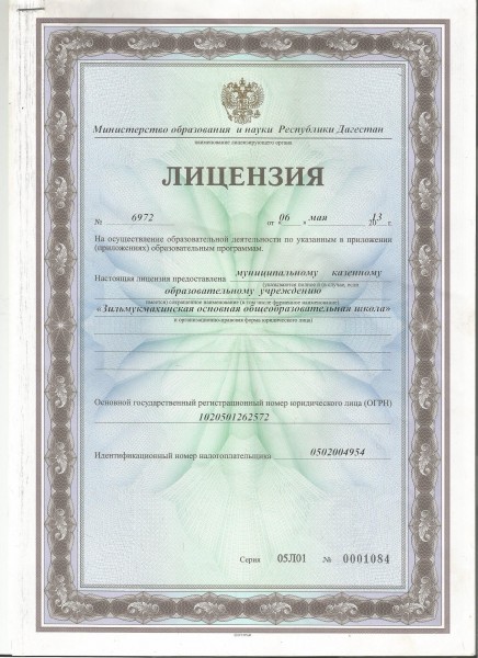 | Полное наименование образовательной организации* | Муниципальное казенное общеобразовательное учреждение "Зильмукмахинская основная общеобразовательная школа" |